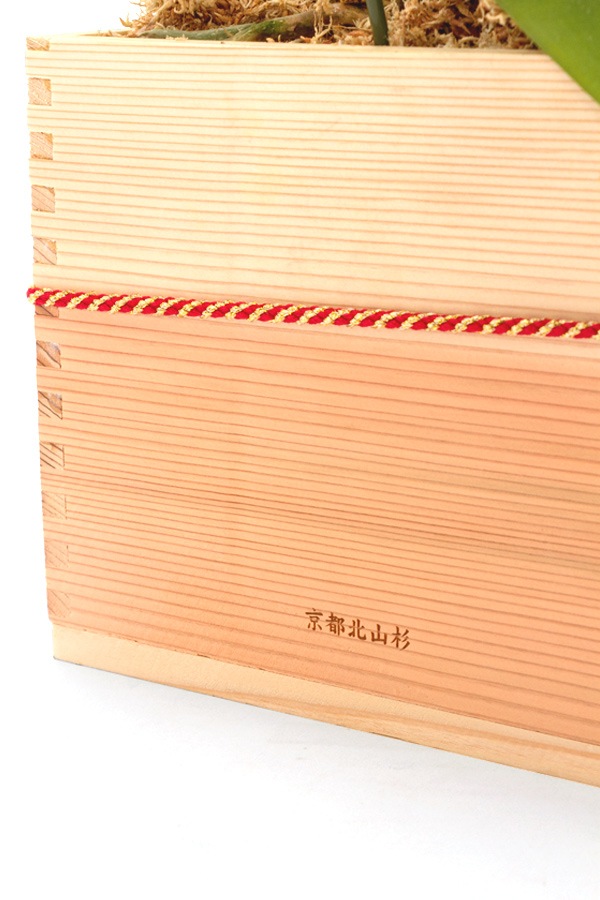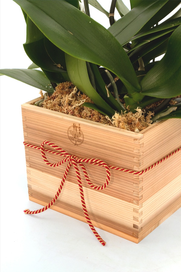 本物の素材を使った升は、香りや手触りが異なり、他のお祝い花よりも喜ばれる一鉢です。