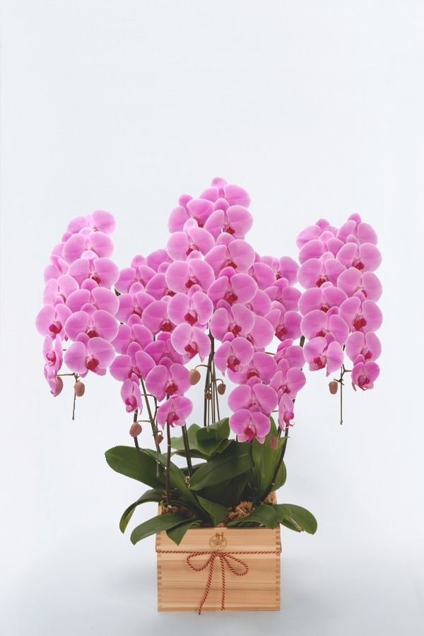 - 京都 はんなり胡蝶蘭 (ピンク大輪) 特選升 (京都 北山杉使用) 5本立 梅
