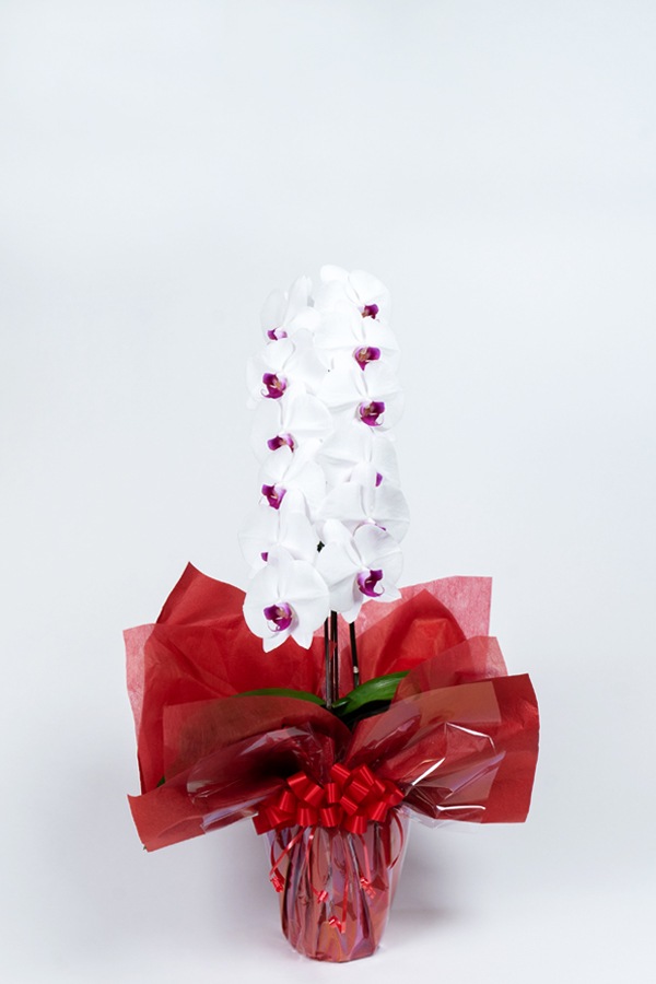 日本屈指の育成技術を誇る洋蘭生産者との独自契約により、一般的な産地直送の胡蝶蘭よりも新鮮で長持ち、お花は数ヶ月程度、花落ちがほとんどない美しい姿でご鑑賞いただくことができます。