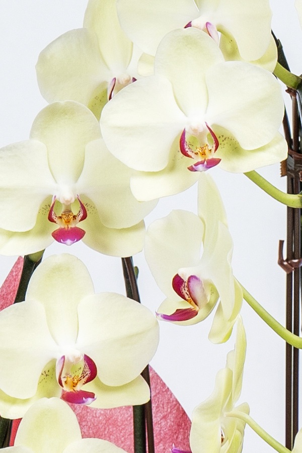 花の美しさだけでなく、立体的な迫力あるボリューム感にもこだわりを持っているため360度どの角度から見て頂いても華やかな胡蝶蘭を楽しめます。