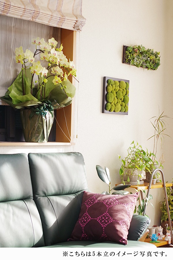 多くの種類がある胡蝶蘭の中でも黄色は珍しく、品もある花色であり、エレガントで豪華な印象もあるため、様々なお祝いの贈り物にもおすすめです。