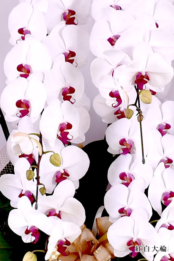 日本屈指の技術を誇る専属洋蘭園が通常よりも数年の育成期間をかけた熟成胡蝶蘭。育成期間が長いため、通常の胡蝶蘭と比較して苗や花が大きくて品質も向上しております。