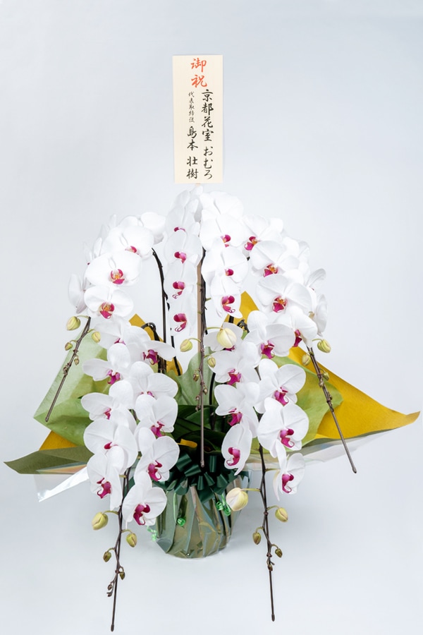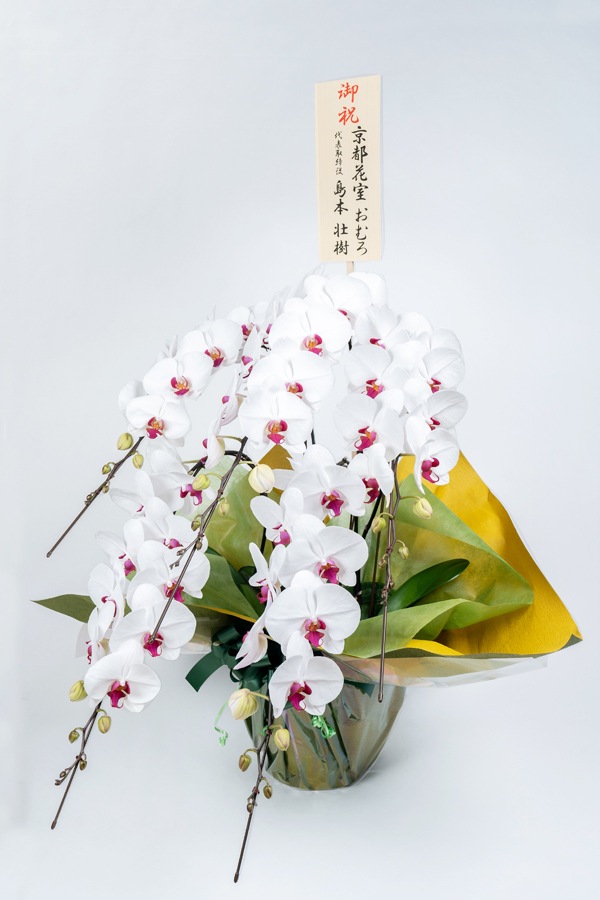 京都花室 おむろの京都胡蝶蘭シリーズは、京都 定番胡蝶蘭(白、ピンク、紅白)、京都 おむろ胡蝶蘭、京都はんなり胡蝶蘭(白、ピンク、紅白)、京都 ミニ胡蝶蘭(ピンク、紅白、黄色)、京都 手染胡蝶蘭(桜柄など)、京都 特選升胡蝶蘭、京都 お誂え胡蝶蘭、京都 色付き胡蝶蘭をご用意しており、本数も1本立から20本以上の多本数立など、120種以上の胡蝶蘭をご用意しております。