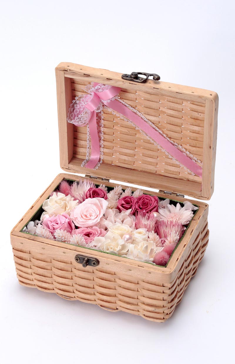 可愛らしい木箱(BOX箱)を開けるとそこには一面のお花が!サプライズにぴったりの商品です。又、鉢などは不要で、どこにでも気軽に飾れるところが人気のポイントです。